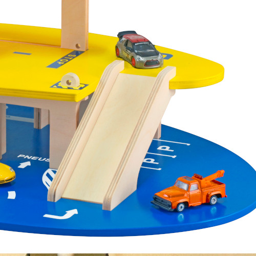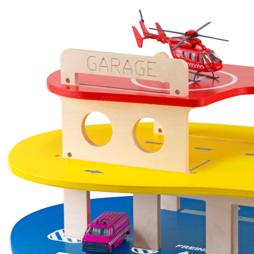 Voitures et hélicoptère n'ont qu'à bien se tenir avec ce beau garage en bois ! Des places de parking et une rampe pour les voitures. De quoi activer les circuits et les mininges ! Ce grand garage en bois avec 3 niveaux est fabriqué en Bretagne à partir de bois local FSC. Voitures non incluses.. Produit Made in France. Dimensions : 59x39x23 cm. À partir de : 3 an(s).