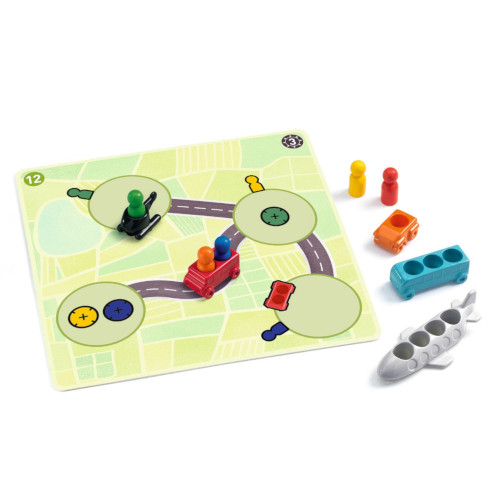 Un beau jeu de logique à faire seul ou à plusieurs en mode coopératif ! Dans ce jeu, héicoptère, van, métro, voiture doivent déplacer les pions afin que chaque personnage arrive à l'endroit...