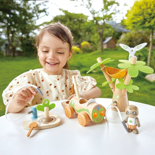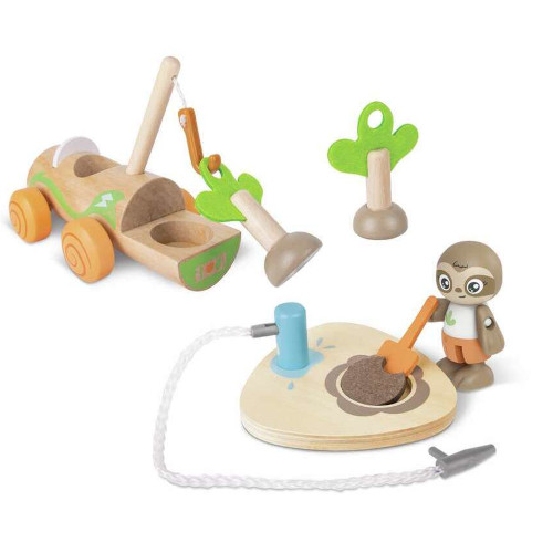 Une petite cabane pour jouer à inventer des histoires ! Avec cette cabane pour figurines en bois, les enfants installent leurs figurines et reproduisent les situations du quotidien. Un éveil aux pratiques économIes en énergie et aux principes physiques. CONTENU : un arbre avec un hamac et une turbine rotative, une voiture « électrique » en roue libre qui peut planter des arbres, un petit arbre à planter, une zone de plantation, une pelle et une figurine Aria le petit paresseux (peut s’assoir, se tenir debout et tenir des accessoires dans ses mains). Produit Made in Chine. Dimensions : 25X23X9 cm. À partir de : 3 an(s).